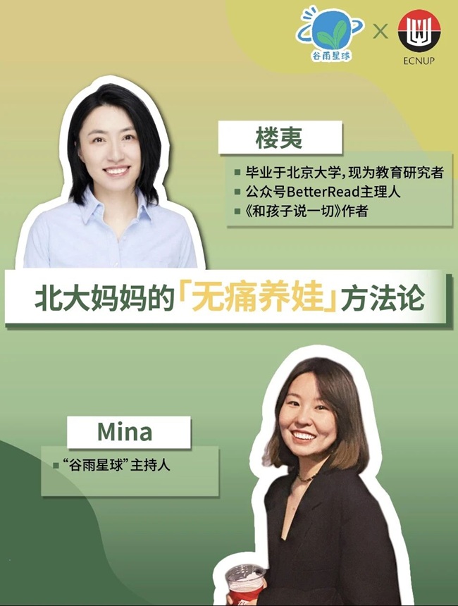 10月30日晚8点,教育研究者,公众号“BetterRead”主理人,《和孩子说一切》作者之一楼夷与“谷雨星球”Mina一起分享真实育儿场景的那些最实用的方法。