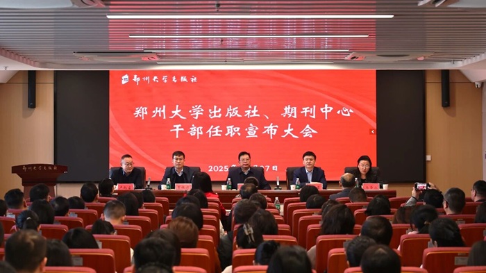 根据郑州大学党委的统一部署,10月27日上午,郑州大学出版社、期刊中心召开干部任职宣布大会,郑州大学党委副书记王利国,党委常委、宣传部部长、新闻中心主任孙保营,党委组织部副部长、党校常务副校长、机关党委书记曹恒涛出席会议,郑州大学出版社领导班子及全体职工参会。