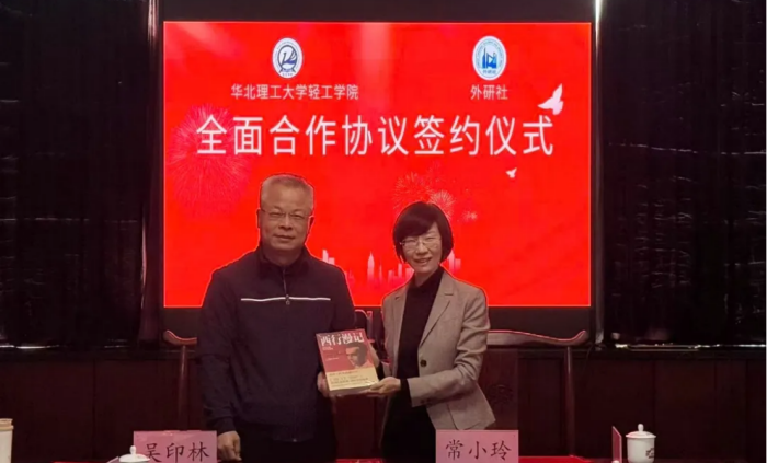 会谈最后,外研社、外研在线为华北理工大学轻工学院赠送图书。