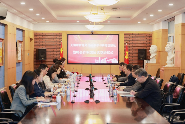 2025年11月5日上午,无锡市教育局与外语教学与研究出版社(以下简称“外研社”)战略合作协议签约仪式暨落地工作座谈会在外研社大厦举行。