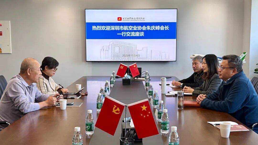 近日,深圳市航空业协会会长朱庆峰、副会长兼华中委会长朱梅一行莅临北京航空航天大学出版社访问交流。北航出版社总经理、总编辑王雷华,副总经理、副总编辑葛建平,综合出版分社嵇春宵、李帆等负责人参与会谈。双方围绕航空领域知识传播与产业融合发展进行了深入探讨,并在多个出版方向上达成基本合作意向。
