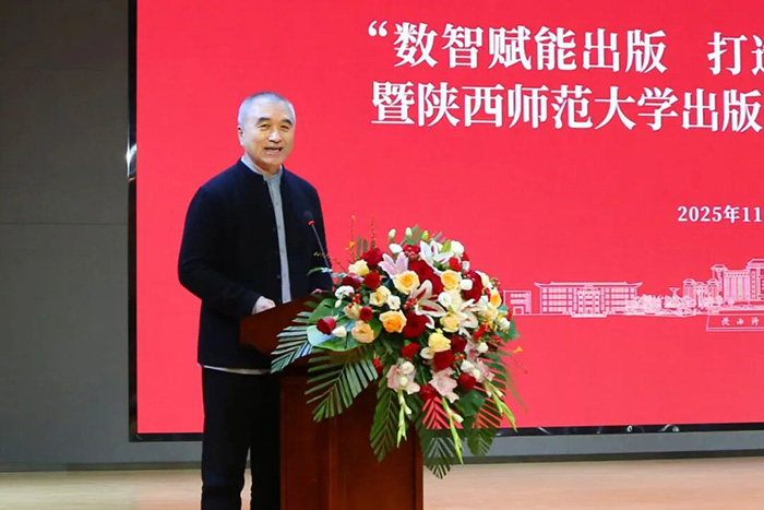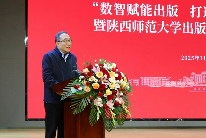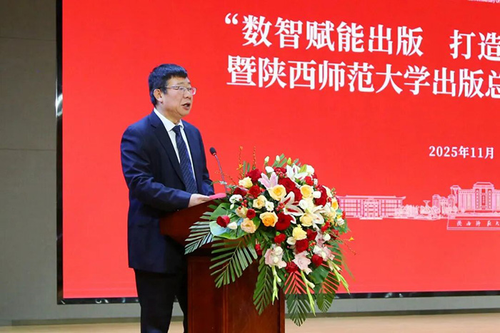 邬书林致辞,对总社取得的成绩给予肯定,表示总社在多个领域形成鲜明出版特色,且积极探索融合转型、实施人才强社战略,队伍建设成果显著。在当今出版业面临深刻变革与重构的新时代背景下,师范大学出版社作为我国出版事业的一支特色鲜明的重要力量,更应敏锐洞察趋势变革,主动谋划未来发展。一是要提高政治站位,深刻把握新时代文化使命;二是要筑牢学术出版根基,服务自主知识体系创新;三是要拥抱人工智能浪潮,打造出版新质生产力;四是要创新人才培养机制,积极参与出版学科共建。希望大家深入研讨,凝聚共识,携手并进,为建设中华民族现代文明做出更大贡献。
