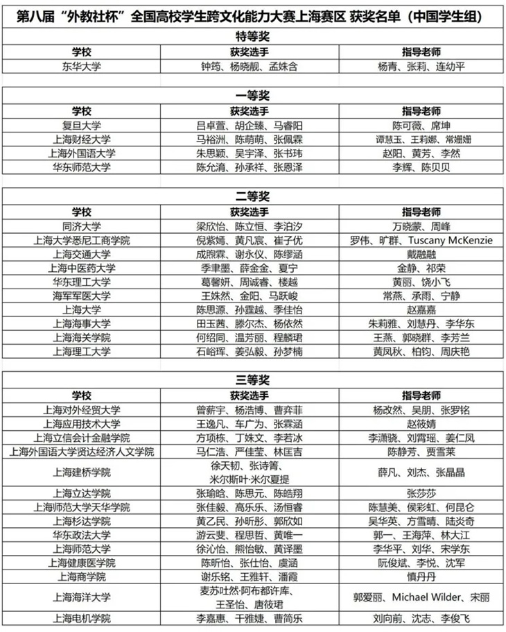 近日,第八届“外教社杯”全国高校学生跨文化能力大赛上海赛区复赛、决赛在上海外语教育出版社(以下简称“外教社”)成功举办。