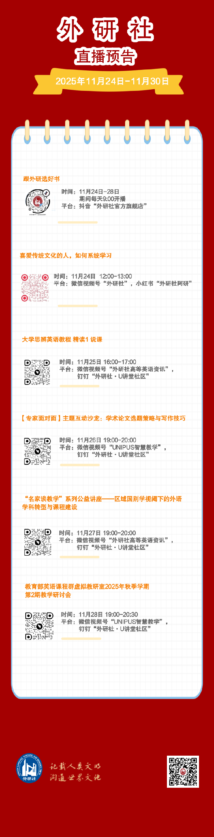 外研社一周直播预告(2025年11月24日-30日) - 活动预告 - 中国高校教材图书网