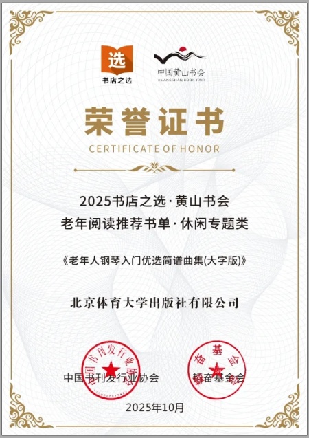 2025年11月15日,首届老年阅读创新发展大会在安徽黄山书会顺利举办。大会现场正式发布了《2025年老年阅读推荐书目》,北京体育大学出版社产品《老年人钢琴入门优选简谱曲集(大字版)》 成功入选“休闲专题类”推荐图书。此次入选,既体现了业界对北京体育大学出版社产品质量的高度认可,也彰显了出版社在深耕老年阅读服务、助力银发经济高质量发展中的积极担当与实践成效。