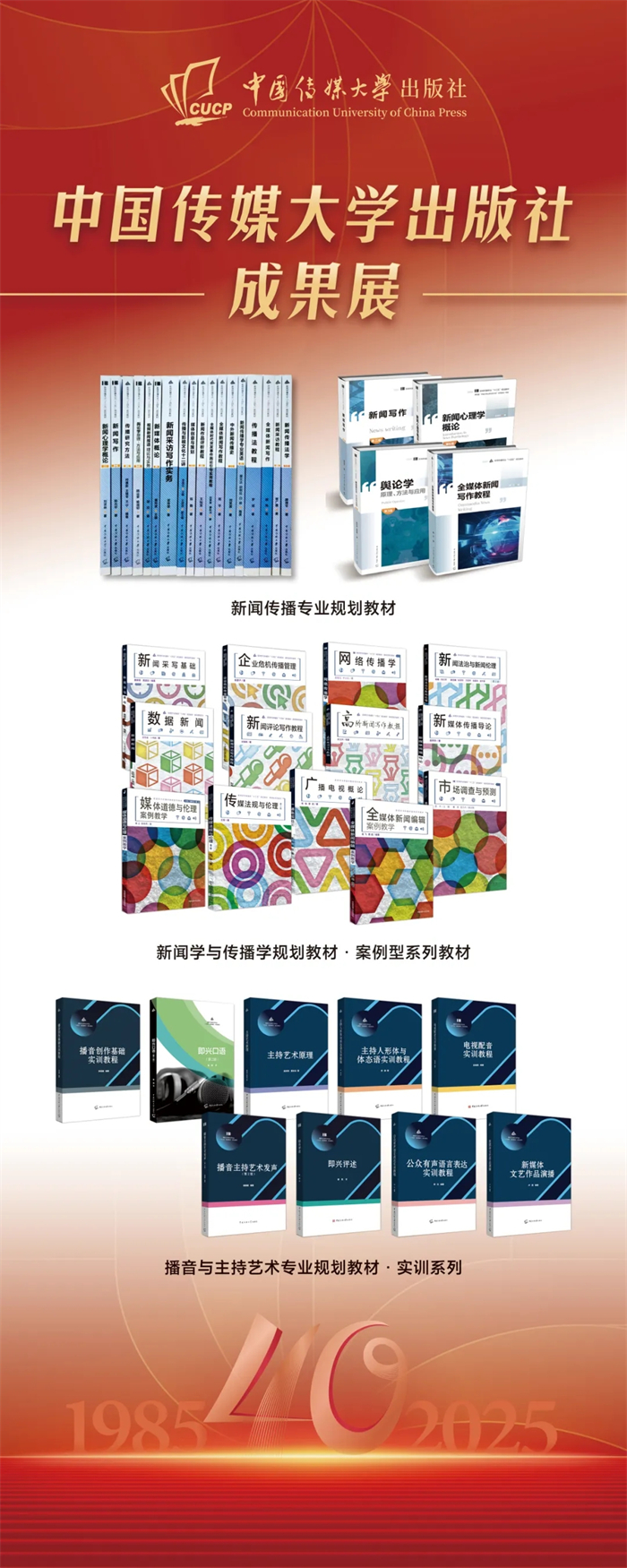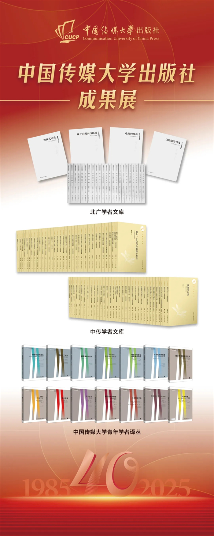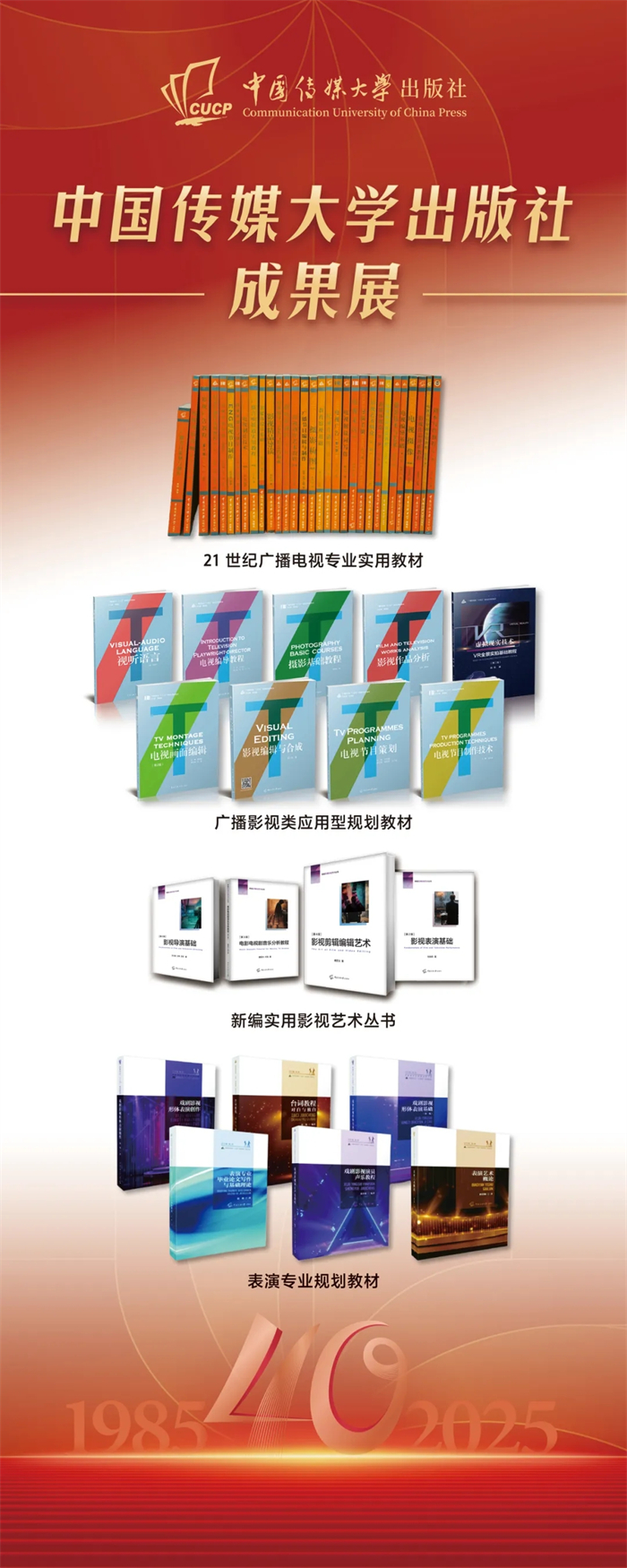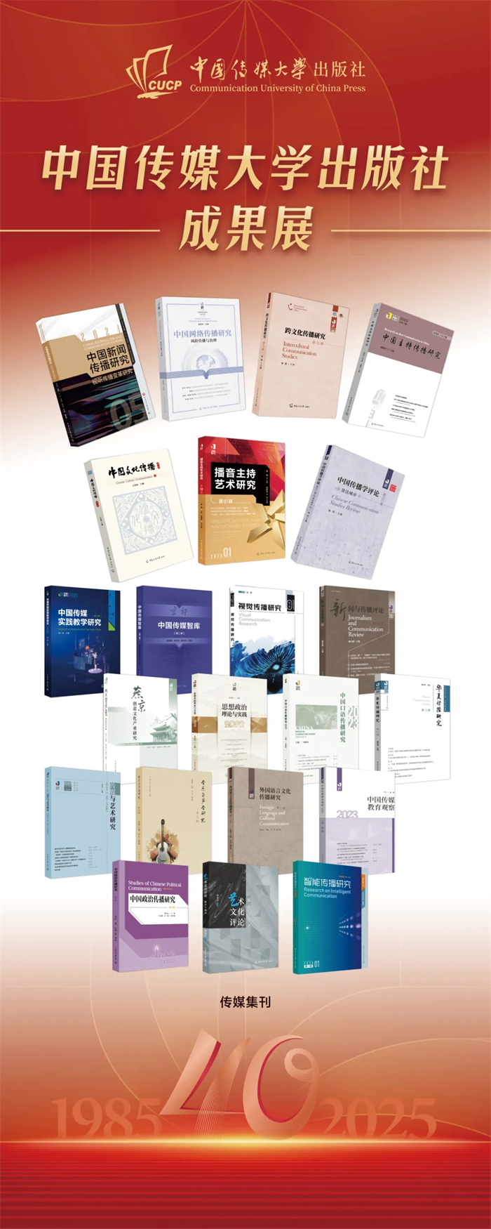 中国传媒大学出版社成果展在本次会议上同步展出。该成果展重点呈现了出版社自建社以来的核心出版成果,涵盖图书、音像制品、学术期刊及融合出版物等品类,系统梳理了出版社在推动学术传播与文化传承中所积淀的出版脉络,受到与会领导与专家的广泛关注与好评,彰显了出版社长期以来坚守品质、深耕内容的出版传统与时代贡献。