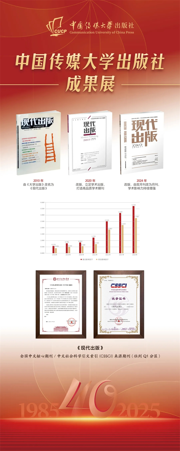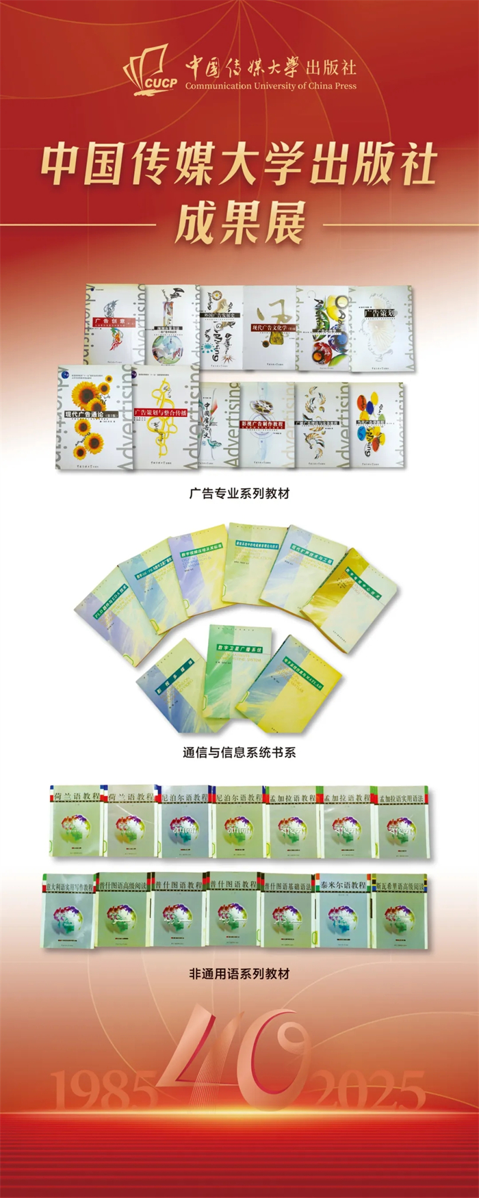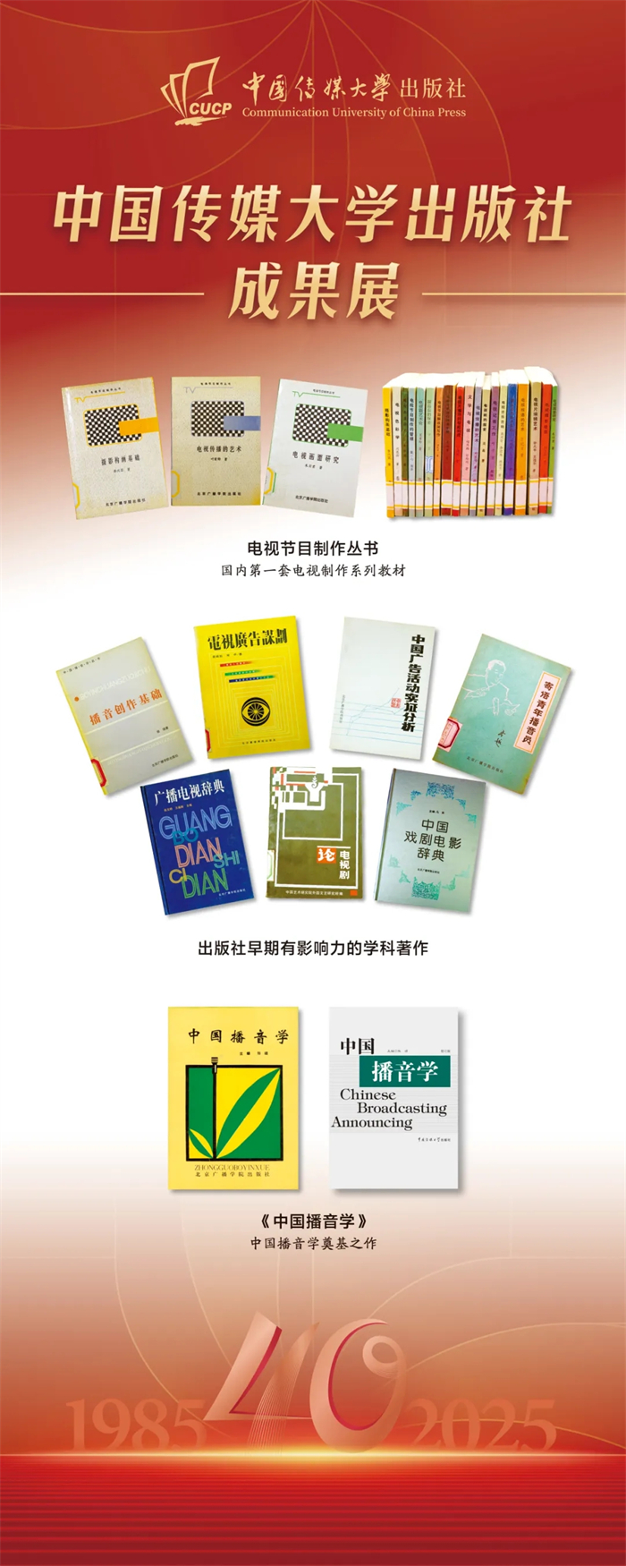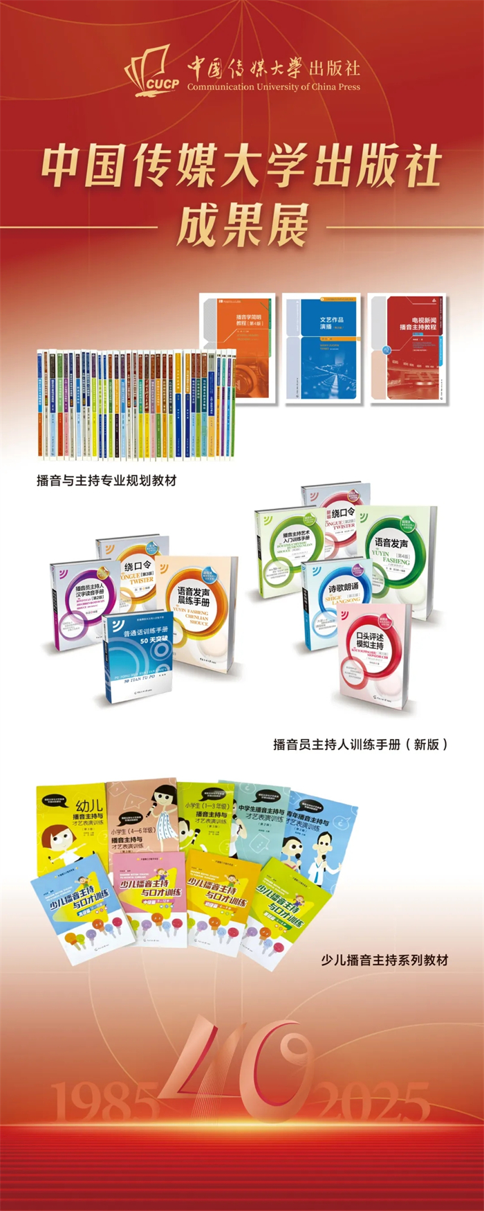 中国传媒大学出版社成果展在本次会议上同步展出。该成果展重点呈现了出版社自建社以来的核心出版成果,涵盖图书、音像制品、学术期刊及融合出版物等品类,系统梳理了出版社在推动学术传播与文化传承中所积淀的出版脉络,受到与会领导与专家的广泛关注与好评,彰显了出版社长期以来坚守品质、深耕内容的出版传统与时代贡献。