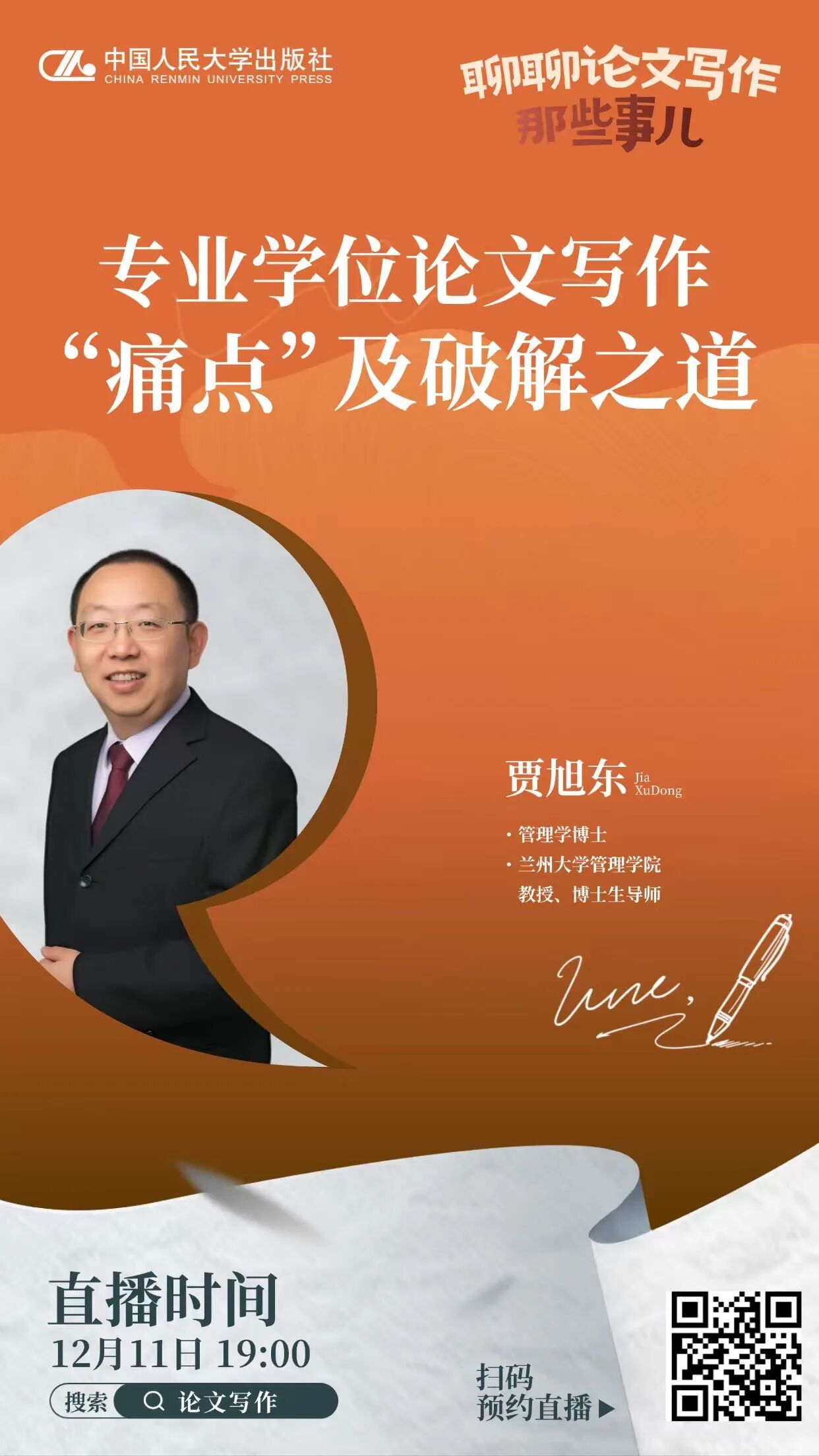学位论文从开题、写作到查重、外审,整个过程宛如一场考验耐力与智慧的长跑,如何才能事半功倍?国内知名管理研究方法论专家、MBA名师贾旭东教授倾情传授多年指导论文开题与写作、参加论文评审和答辩的宝贵经验,为专业学位同学顺利实现论文“通关”提供全方位指导!