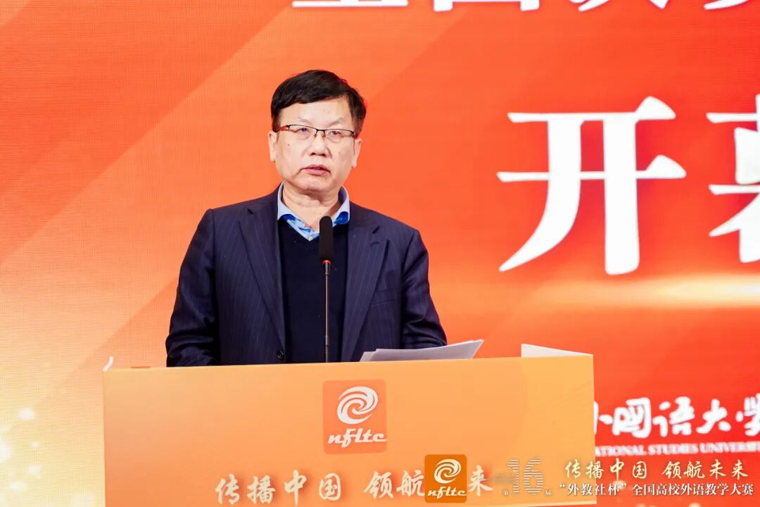 大赛全国组委会主任、北京外国语大学孙有中教授在致辞中提出,大赛始终紧扣时代脉搏,已成为展示与检验教学成果的重要平台。他谈到,国家锻造对外开放能力和国际传播能力、讲好中国故事、跨越文化屏障,离不开强大的外语教育;培养推动人文交流、文明互鉴的人才,打造在全球化时代具有全球胜任力的人才队伍,也离不开强大的外语教育。他强调,外语教育大有可为,要加倍努力,为构建堪当民族复兴大任的外语教育事业砥砺前行。