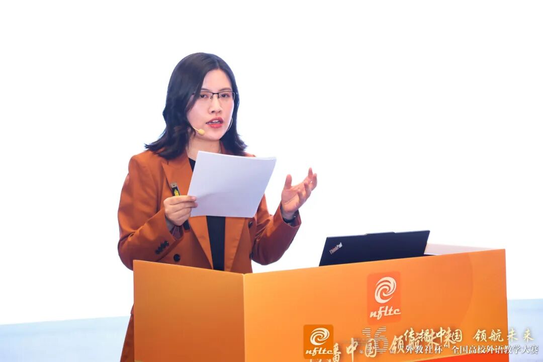 南京大学王海啸教授作为视听说课组评委代表对视听说课组的选手表现进行了点评。王教授总结了参赛教师展现的四大优点:一、参赛选手能够根据语言课程本身的特点,挖掘思政元素,而非生搬硬套,课程思政融入形式自然丰富;二、能够利用AI分析教学数据、无代码制作网页,制定合理使用AI的标准、注重对于学生AI能力的培养,充分体现了优秀的AI应用能力与数字素养;三、提高了对于视听说课程中“视”与“说”部分的重视;四、能够对于教材进行二次加工,充分彰显学校特色、地区特色、个人特色。他也提到了参赛选手有待提升的方面:对于英语语言地区以外地区的文化与语言现象等内容关注不够;对于教学设计模式的了解还需提高;对于材料的研究还需深入;对于AI方案的点评缺乏合理的逻辑结构。他希望各位教师在将来进一步提升语言基本功、教学理念与教学基本素养。