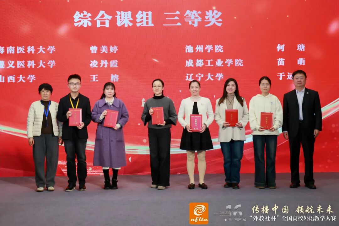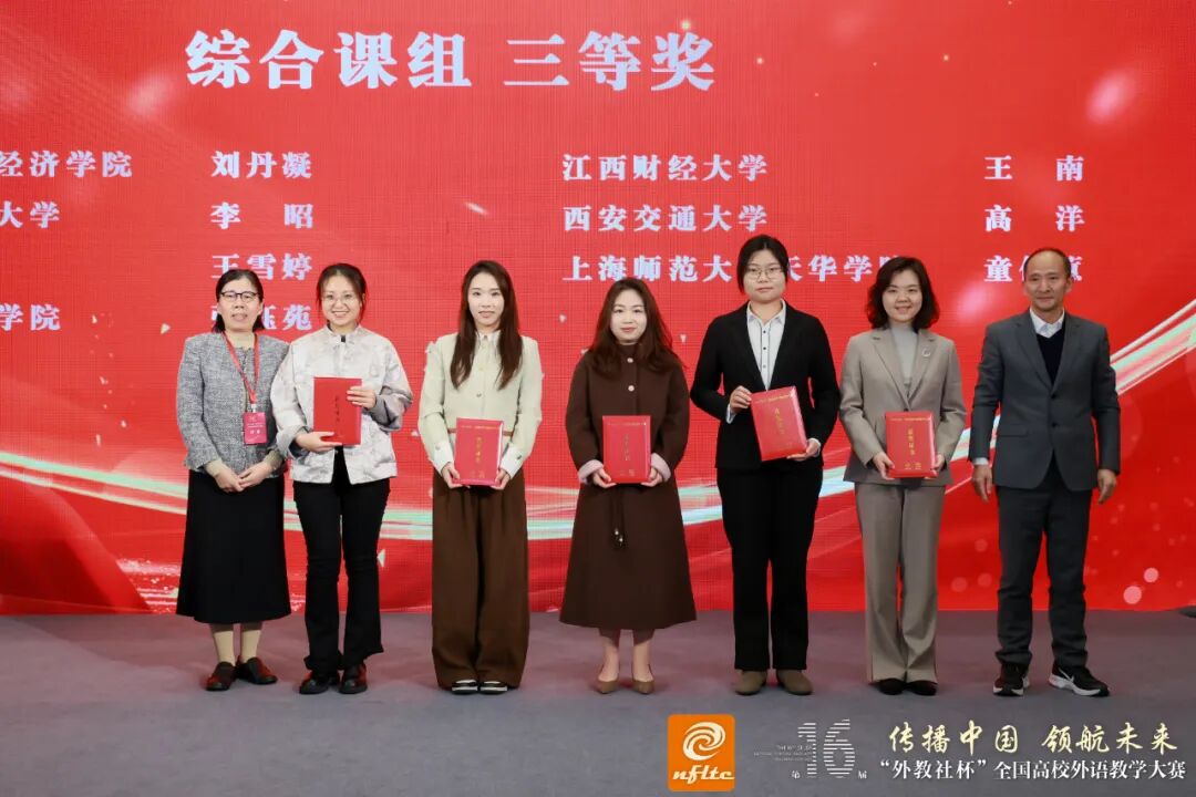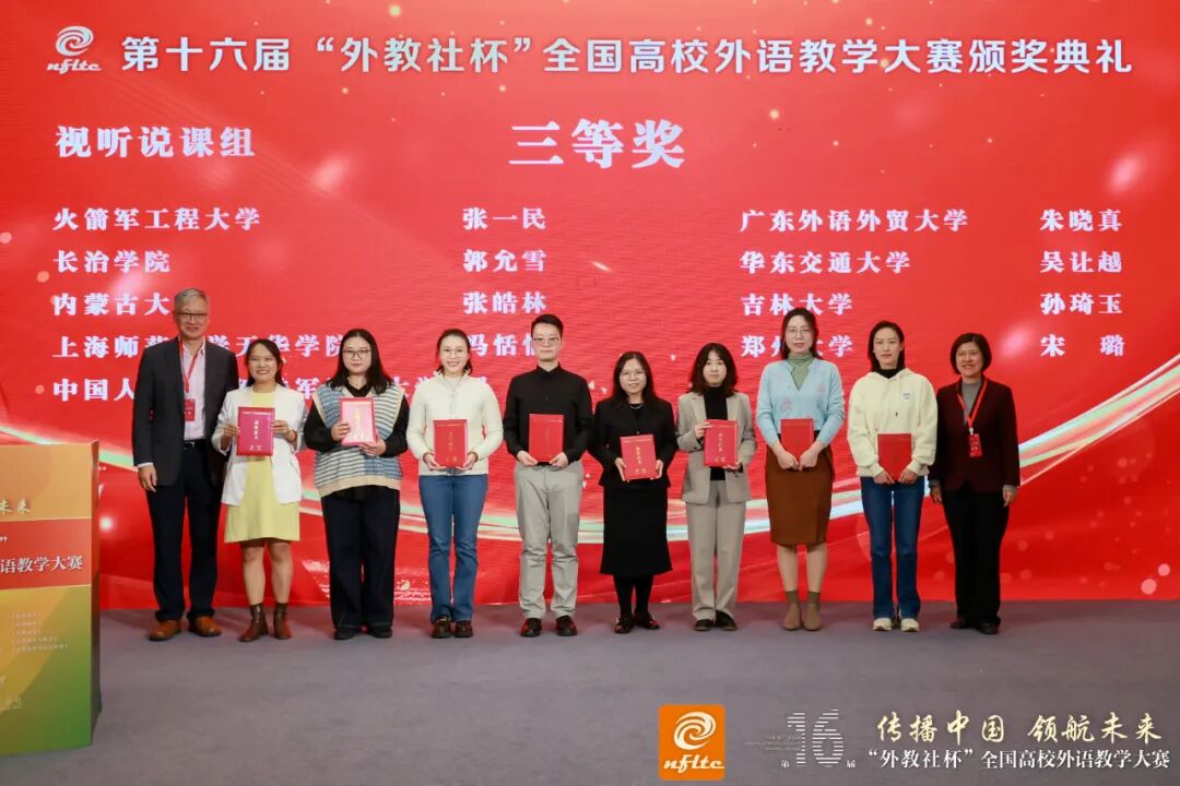中南大学侯先绒教授、上海外语教育出版社副总编辑张宏为综合课组三等奖获奖选手颁奖