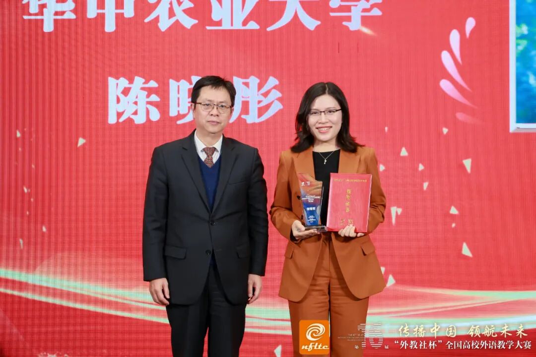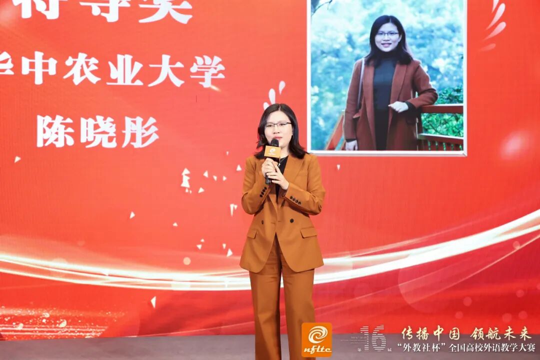 比赛现场气氛热烈、精彩纷呈。经过激烈比拼,最终,来自华中农业大学的陈晓彤老师和来自四川师范大学的何广宇老师分别摘得综合课组和视听说课组特等奖桂冠。