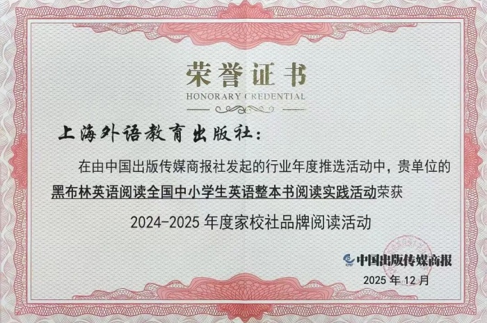 “黑布林英语阅读”全国中小学生英语整本书阅读实践活动荣获“2024-2025年度家校社品牌阅读活动”