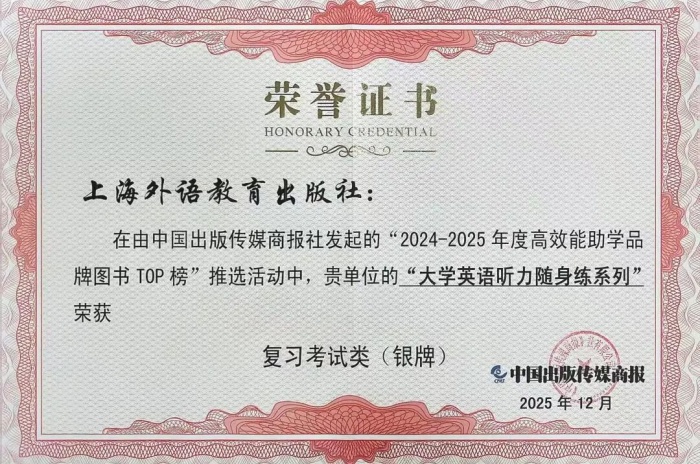 “大学英语听力随身练系列”荣获“2024-2025年度高效能助学品牌图书TOP榜复习考试类(银牌)”