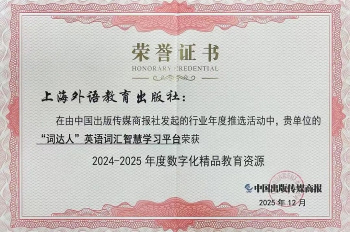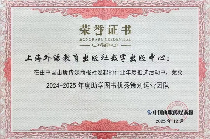 上海外语教育出版社数字出版中心荣获“2024-2025年度助学图书优秀策划运营团队”