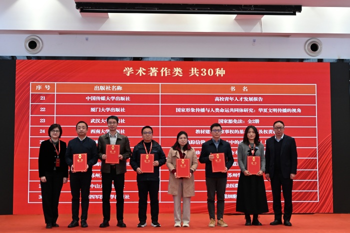 本网讯 2025年12月13日,中国大学出版社协会(以下简称“大学版协”)2025年年会开幕式暨会员大会在杭州举办。会上,公布了2025年度百种“大学出版好书”推荐名单,共84家大学出版社100种图书(其中主题出版22种、高校教材30种、学术著作30种、大众图书18种)入选。大学版协理事长李永强,副理事长王凤廷、王焰、禇超孚、孙玉、陈晓阳,秘书长代根兴为获奖图书编辑颁发证书。