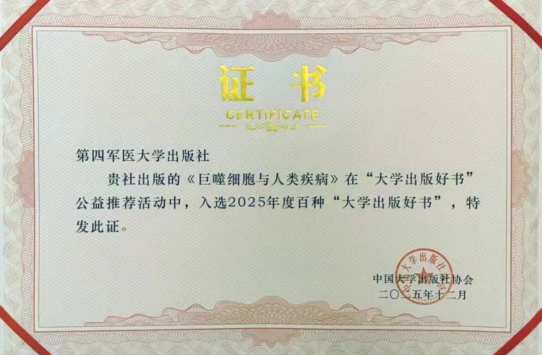 近日,中国大学出版社协会公布2025年度百种“大学出版好书”公益推荐入选书目,第四军医大学出版社申报的《巨噬细胞与人类疾病》一书成功入选。该活动旨在集中展示全国大学出版社的最新出版成果,推动优秀图书传播,引导出版精品创作,促进高校出版事业高质量发展。此次入选的《巨噬细胞与人类疾病》系国家科学技术学术著作出版基金支持项目,是第四军医大学出版社践行“聚焦军事医学,出版精品图书”理念的代表性成果。该书不仅汇聚了该领域前沿科研进展,更面向部队实践、院校教学与科研创新,是一部重要的专业参考著作。
