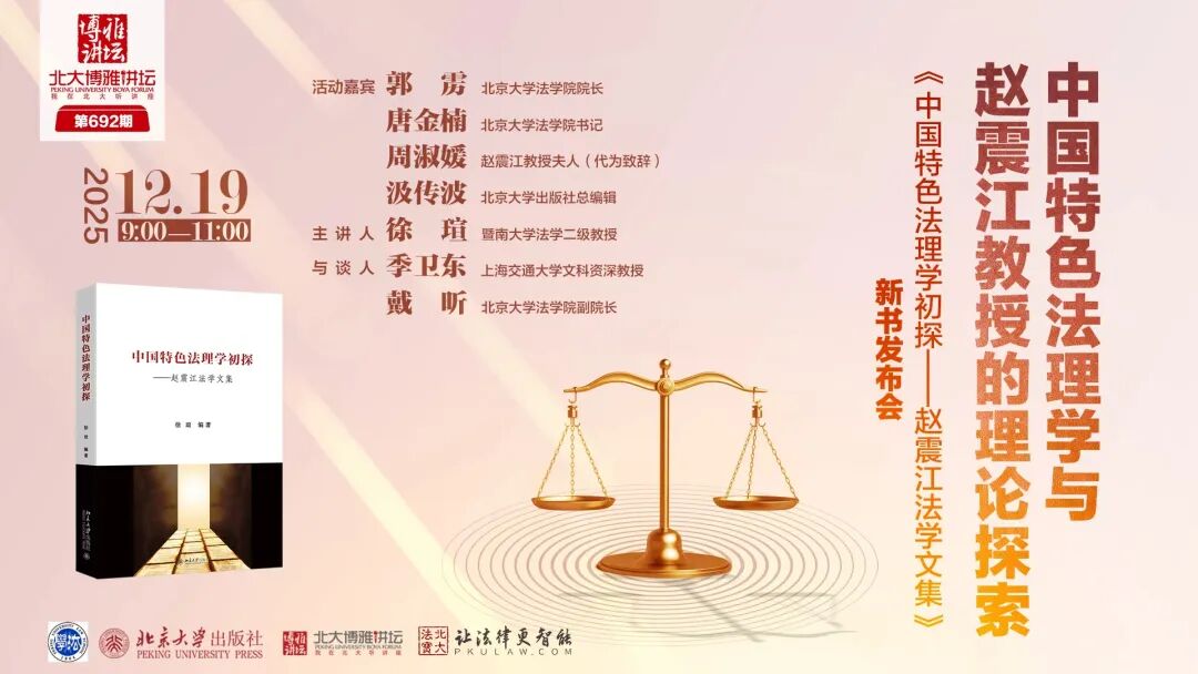 本次活动由北京大学法学院、北京大学出版社联合主办,由赵震江教授的亲人以及后辈学人全方位地讲述赵震江老师“10岁参加游击队、17岁加入中国共产党、为中国特色法理学奋斗一生”的人生故事,介绍他的学术地位、对中国特色法理学的探索与建构,希望能够让更多后辈学人了解赵震江教授的思想成果与人生经历,激励后辈学人在中国特色法理学的道路上继续前进、勇攀高峰。