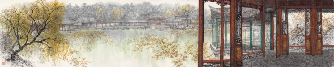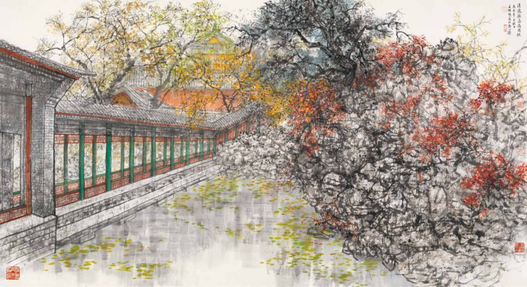 王明明先生以数十年笔墨修为,将南北名园凝于素宣——从颐和园的皇家气象到拙政园的文人清韵,从四时轮回的草木情致到晨昏更迭的光影诗篇。