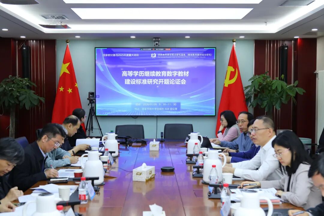 近日,国家教材建设重点研究基地2025年度重大项目“高等学历继续教育数字教材建设标准研究”开题论证会在国家开放大学出版社举行。教育部课程教材研究所党委委员、副所长曾天山,中国教育科学研究院党委委员、副院长于发友,中国新闻出版研究院标准化研究所所长刘颖丽,教育部职业教育发展中心教学教材处处长刘义国,北京邮电大学教授李青,人力资源和社会保障部职业技能鉴定中心研究员许远担任开题论证会专家。