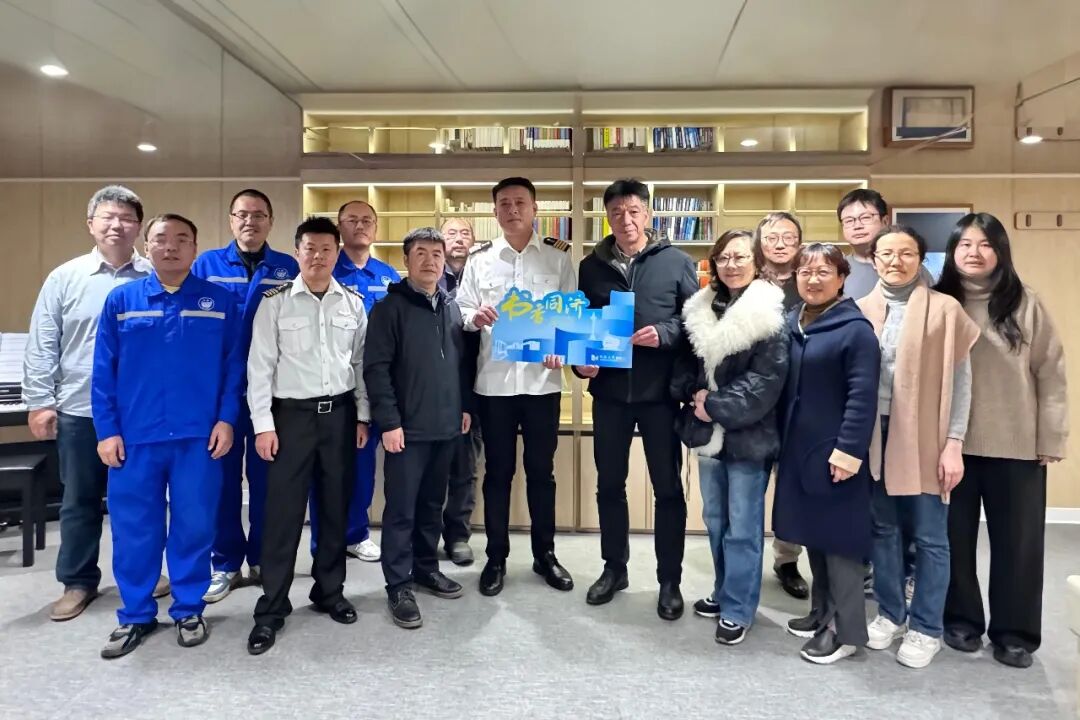 2026年1月19日,“同舟共济 书香传情——同济大学出版社向‘同济’号科考船捐书仪式”顺利举行。同济大学出版社党委书记吴为民,党委副书记、纪委书记危红,同济大学海洋与地球科学学院副院长、船舶管理中心主任拓守廷,海洋与地球科学学院党委副书记李丽,“同济”号科考船船长石斌,以及来自船舶管理中心、同济大学出版社等单位相关人员参会。