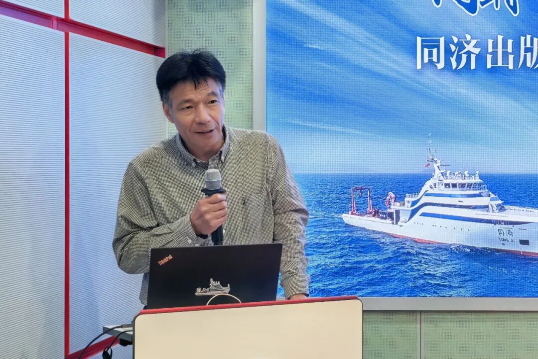 仪式上,拓守廷代表学院和船管中心,对同济大学出版社的慷慨捐赠表达了衷心感谢。他表示,“同济”号科考船长期在海上执行科考任务,船员和科考队员们既要全力推进科考任务,攻克技术难题,也需要通过书籍充实精神生活、补充知识储备。此次同济大学出版社捐赠的图书,精准契合了船上人员的工作与生活需求,为大家送上了宝贵的精神食粮。他也期待以此次捐赠为契机,双方持续深化合作,依托“同济”号的平台优势,推出更多精品图书。