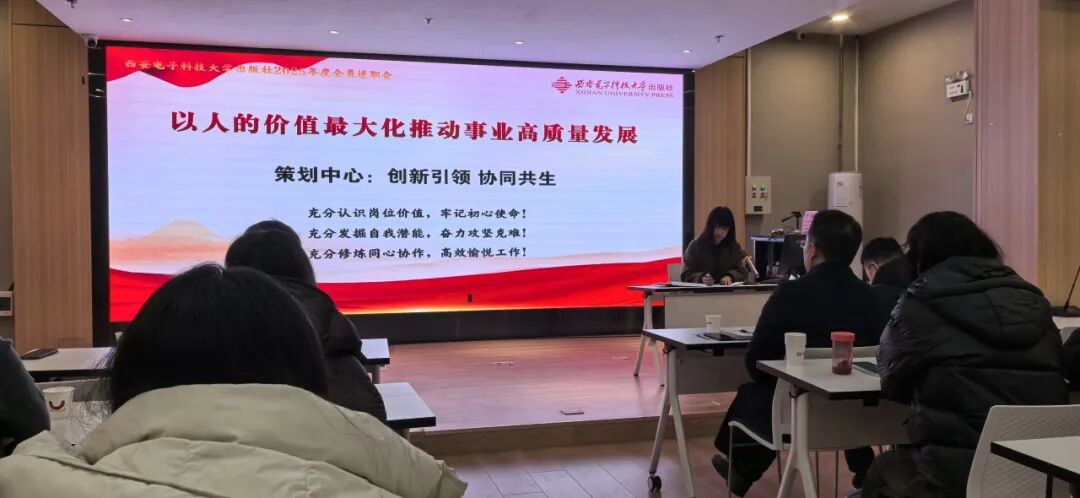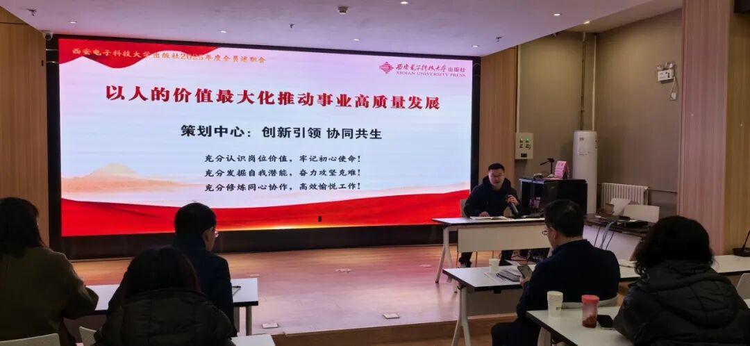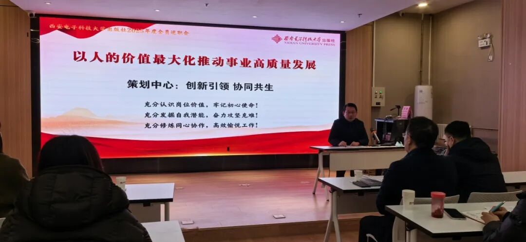 岁月鎏金,初心如磐;饱满精神,逐光前行。为全面总结过去一年的工作成效,以目标导向和问题导向科学谋划未来发展方向,凝聚奋进力量,1月26日至30日,西安电子科技大学出版社(以下简称“西电社”)组织开展全员年度述职报告会。述职会以人的价值最大化推动事业高质量发展为指引,围绕“充分认识岗位价值,牢记初心使命;充分发掘自我潜能,奋力攻坚克难;充分融入同心协作,快乐高效工作”的要求,各部门依次登台,晒成绩、查不足、定目标、谋发展,以务实作风回望耕耘路,以奋进姿态开启新征程。
