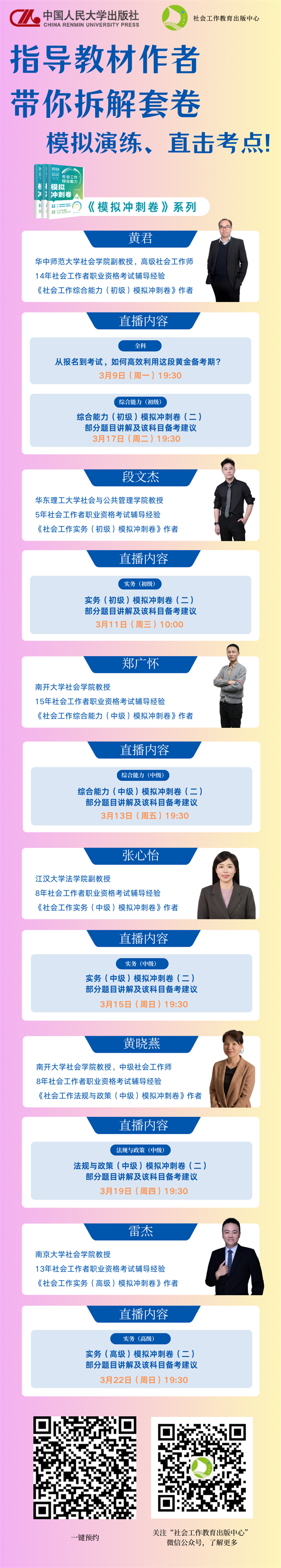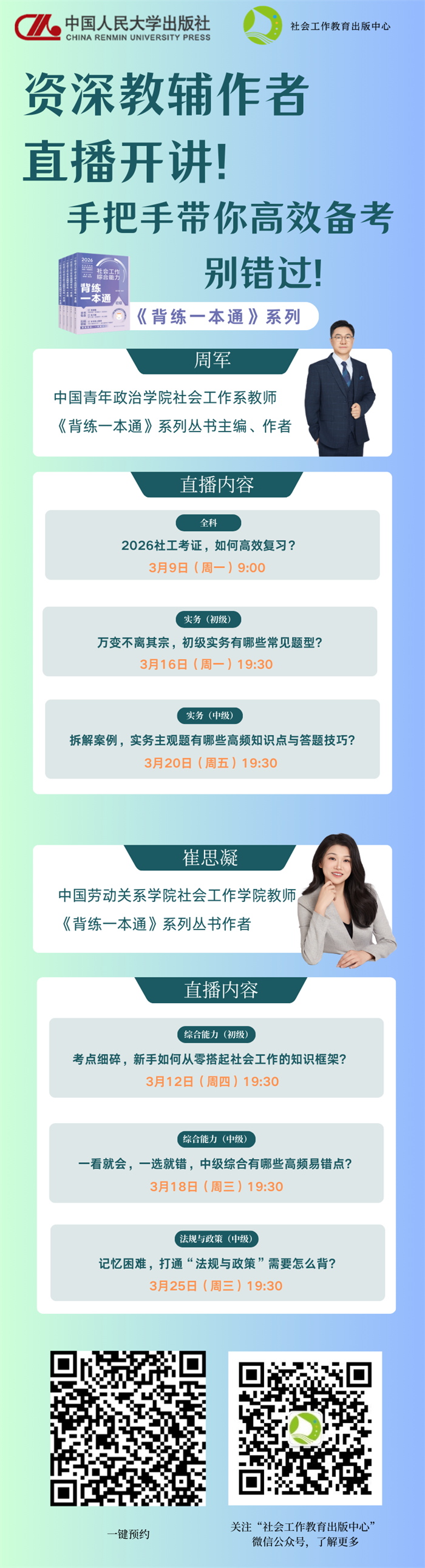 关注“社会工作教育出版中心”微信公众号/视频号,可观看免费直播。