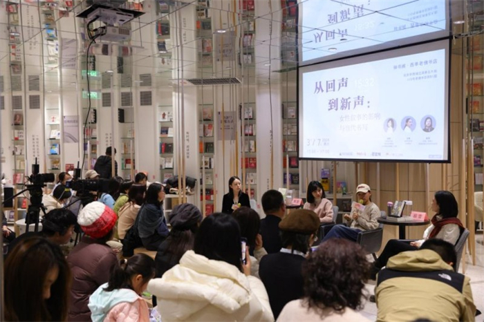 3月7日下午,“三八”国际劳动妇女节前夕,北京钟书阁·西单老佛爷店内座无虚席。由广西师范大学出版社与中国妇女报社联合主办的“请听她说”年度思想对谈在这里举行。本次对谈以“从回声到新声:女性叙事的影响与当代书写”为主题,邀请文学博主、青年写作者都靓,写作者王晚,独立纪录片导演顾雪三位嘉宾,展开了一场关于女性如何被讲述、如何自我书写的深度对话。