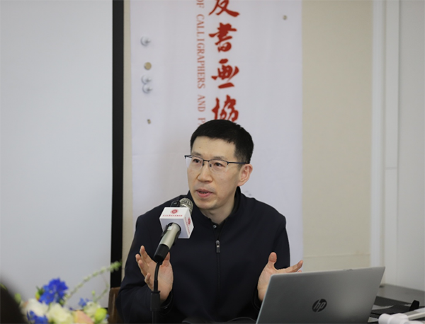 在主题讲座环节,《中国书法关键词(汉英对照)》作者邓宝剑以“书法术语漫议”为题,从理论源流、审美内涵与跨文化译介等角度,系统阐释了中国书法核心术语的深厚底蕴和当代价值,赢得了与会人员的阵阵掌声。
