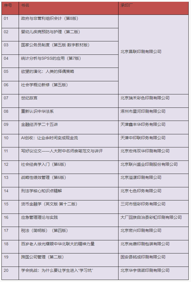 人大出版社2025年度“毕昇之光精美印刷品”名单
