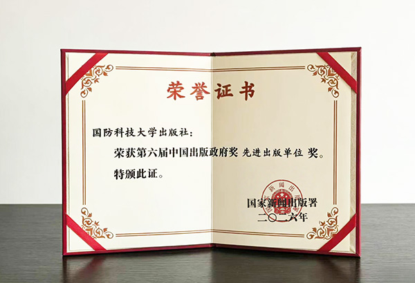 国防科技大学出版社荣获第六届中国出版政府奖先进出版单位奖。先进出版单位奖评选需严格考量政治导向、主业成就、创新能力等核心指标。获此奖项是对国防科技大学出版社近年来发展成绩的高度肯定。