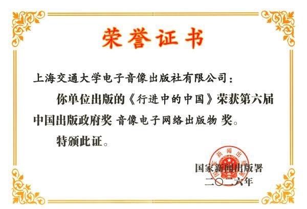 在喜迎上海交通大学建校130周年之际,从学术殿堂再传佳音。近日,国家新闻出版署正式公布第六届中国出版政府奖获奖名单。由上海交通大学电子音像出版社精心打造的《行进中的中国》中英双语纪录片,荣获第六届中国出版政府奖音像电子网络出版物奖。这份沉甸甸的国家级荣誉,不仅是对作品思想深度与艺术水准的至高肯定,更是对交大“百年书香”精神在新时代的生动诠释,是献给百卅交大的一份独特贺礼。