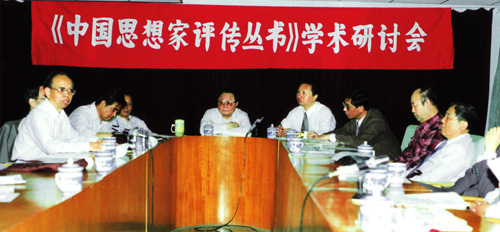 民盟中央主席蒋树声教授(中)在担任南京大学校长时,出席1999年1月举办的“《中国思想家评传丛书》与传统思想文化学术讨论会”。