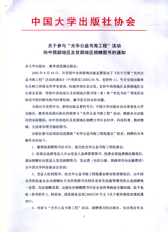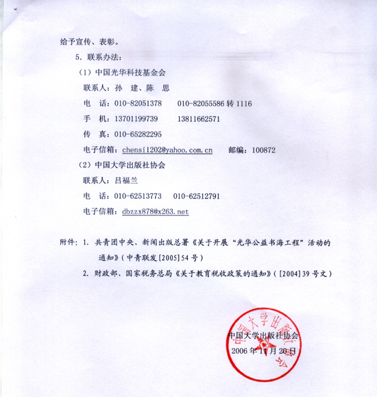 附件:1.共青团中央、新闻出版总署《关于开展“光华公益书海工程”活动的通知》(中青联发[2005]54号)