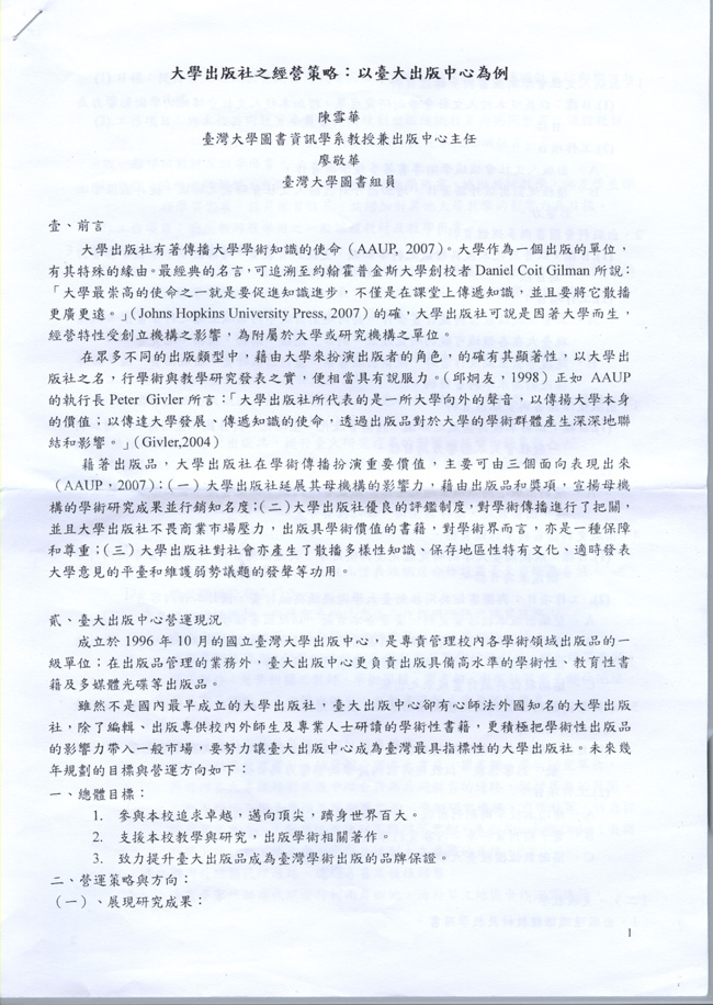 大学出版之经营策略:以台大出版中心为例 - 大学版协代表团