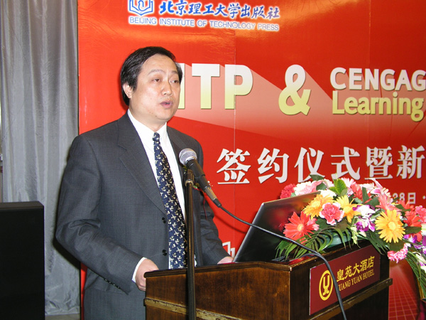 尊敬的各位领导、来宾: 大家上午好! 首先请允许我代表北京理工大学出版社向远道而来的圣智学习出版公司的各位同仁以及在座的新闻媒体界的朋友们表示热烈的欢迎和衷心的感谢! 随着中国高等职业教育正以前所未有的速度蓬勃发展,职业教育理念和职业教育内容的创新与变革也越来越强烈。不久前,北京理工大学出版社携手美国世界计算机行业协会,向高等职业教育领域的国际合作迈出了战略一步。今天,我们有幸成为圣智学习出版公司在高等职业教育领域的战略合作伙伴,标志着北京理工大学出版社在高等职业教育出版国际化的道路上正式进入实质性拓展阶段,预示着我们的高等职业教育产品将就此成为高等职业教育教学改革的重要支持力量!学习和借鉴国际化的职业教育思想,使得职业教育教材更加符合高等职业教育教学改革的要求,是我们矢志不渝的追求! 北京理工大学出版社从2004年开始进入高等职业教育出版领域,目前已经形成了信息、电子、设计、汽车、机电、经管、物流、英语等多个专业领域的出版板块。在高等职业教育出版领域,北京理工大学出版社始终探索着更加富有竞争力的发展道路,并确立了从专业基础课程系列教材的出版,到专业课程、实训课程的完整体系构建,再到国际化职业教育精品教材的引进“三步走”的基本思路,在前两个阶段的积累、铺垫过程中,北京理工大学出版社始终秉承着服务院校、确保质量、突出特色的精品战略,已经有大量高等职业教材成为国家级、部委级规划教材、精品教材。2007年,北京理工大学出版社高等职业教材销售码洋突破5000万元,已经成为高等职业教育出版领域的重要力量。如今,按照我们的发展思路,与圣智学习出版公司的战略合作签约,标志着国际化合作的第三阶段已经全面启动。 圣智学习出版公司,前身汤姆森学习出版集团,是全球最大的、为终身学习提供信息的出版集团之一。作为全球最大的职业教育出版机构之一,圣智提供全面的职业教育出版物;作为全球最大的为客户定制学习方案的提供商之一,圣智致力于面向中国市场输出优秀的职业教育出版物,并提供增值的服务。 根据双方签署的战略合作意向,北京理工大学出版社将以圣智职业技术教育产品中的工程技术等类别作为依托,面向完整的产品线进行重点引进,并进行更为优势的营销与推广;北京理工大学出版社作为圣智在中国职业教育的重要战略合作伙伴,将得到圣智基于高等职业技术教育出版物的版权交易、产品开发、教育服务等支持,并得到工程技术类职业教育产品的优先提供;北京理工大学出版社将圣智的职业教育产品向中国的教育机构进行推荐,圣智将提升职业教育水平,引进国际化的职业教育理念,作为与北京理工大学出版社合作的出发点,双方将在职业教育领域开展全方位的合作。 北京理工大学出版社与圣智学习出版公司的签约不仅标志着两个教育出版机构建立战略合作伙伴关系的良好开端,也标志着我国职业教育出版与国际职业教育出版的合作更加深入,并提供了全新的合作模式——将国际化的职业教育教学理念、教学体系、教学方法推荐给国内的高等职业院校,通过组织相关专业的教授、专家,结合中国职业教育的特色和实际,有选择、有计划地改进并开发更加先进而又符合教学实际的职业教育教材,推动中国职业教育的更快发展! 服务教育、教学,服务学生、教师,是高等职业教育出版工作的宗旨与使命。北京理工大学出版社将借助圣智国际化的职业教育资源,进一步参与我国高职高专教材建设与革新,探索职业教育新模式、新思路,在进一步提高为院校服务能力的基础上,继续开发更多更好的教学产品! 谢谢大家! 来源:中国高校教材图书网