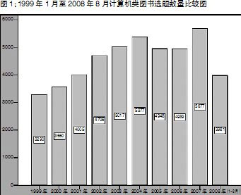 编者按 本次分析报告以英语、法语、德语、西班牙语、俄语、阿拉伯语、朝鲜语为主要对象,其中以英语类图书选题为主,不包括专业的词典和一些相关的教学辅导用书。其他不是我国主流外国语学习语言的图书,由于其受众群体相当小,不具备代表性,不作为本次分析的对象。 从1999年1月至2008年8月,外语类图书选题总体走势比较平稳。1999年至2004年,全国英语类图书选题的总体数量是上升的,但是增幅不大,平均在7%左右,到了2005年和2006年呈下降趋势,幅度为8%;估计至2008年年底,增幅亦在10%以内(见图1)。法语、德语、西班牙语、阿拉伯语、俄语,在中国属于小语种,其年度出版的数量相对较小,呈现起伏迭荡的发展态势。