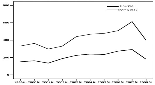 图2.1999年1月至2008年8月法律理论类图书选题数量比较图