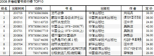 2008年,在经管类图书的作者、出版者和读者心中留下了别样的印记。经管类图书走过了2007年以来的高涨期,遭遇了次贷危机、金融危机以及国内的股市暴跌、经济转冷等挑战,表现出一半是火焰、一半是海水的景象。经管书的销售量虽然在整体上已经出现回落,但是其中仍不乏亮点。