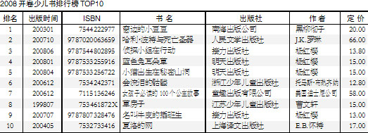 2008年,传统畅销书作家的市场表现依然强势,是儿童文学细分市场相对成熟的表现。