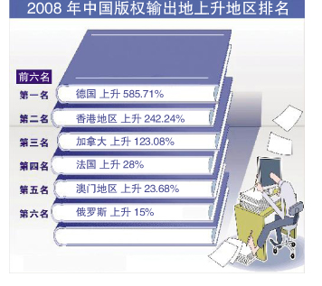 根据新闻出版总署的统计,2008年全国共引进出版物版权16969种,其中图书15776种,分别较上年增长52.9%、53.8%,创下近年来最高涨幅。业内人士将之看作是2007年版权引进数量同比下跌之后的一次“报复性反弹”。与之相对应的,引进版图书在全国图书零售市场所占的比重也在上升。根据“开卷全国图书零售市场观测系统”的数据,2008年7月~2009年6月,全国图书零售市场上动销品种的近20%为引进版作品,它们给中国图书零售市场带来了近30%的码洋,而上一年的码洋贡献率为20%。