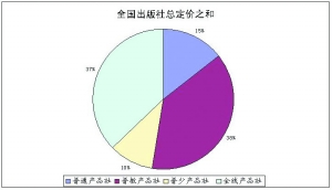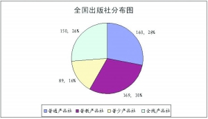 纳入本年度分析的全国出版社568家中,有160家出版普通图书,169家出版普通图书和教材,89家出版普通图书和少儿图书,150家出版全线产品(普通图书、教材、少儿图书),所占比例分别为:28%、30%、26%、16%。如果按照码洋计算的话,这个比例就发生了明显的变化:15%、38%、10%、37%。对比这两组比例数,从单位结构的均衡到产品结构的倾斜现象是十分明显的。导致这个倾斜的主要原因也是一目了然的:教材。