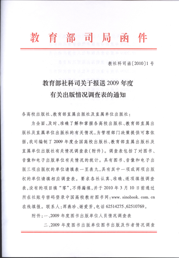 教育部社科司关于报送2009年度有关出版情况调查表的通知 - 信息公告 - 中国高校教材图书网