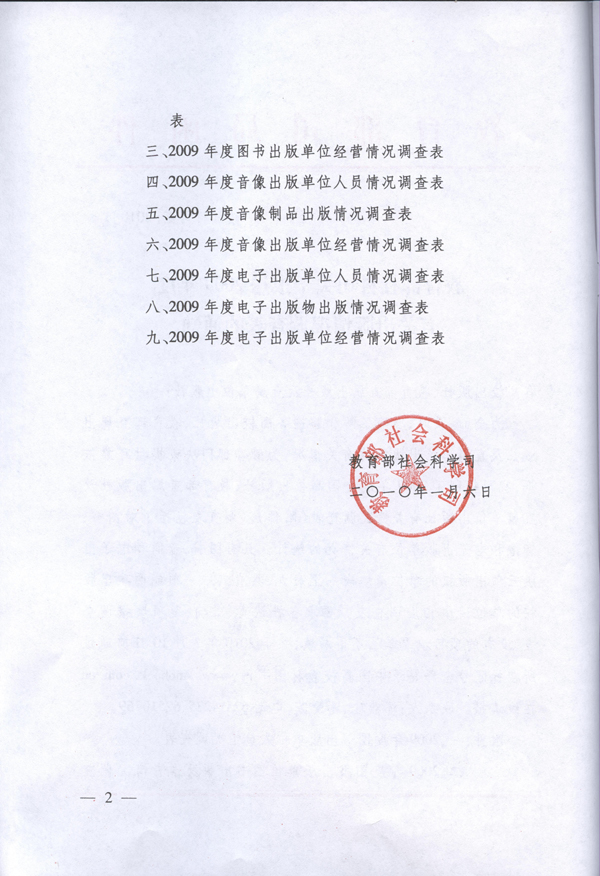 教育部社科司关于报送2009年度有关出版情况调查表的通知